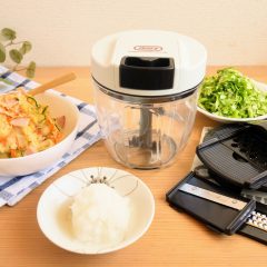 料理をするときに意外と手間がかかる野菜のカット。手軽に済ませたい一方で、電動のフードプロセッサーは重さやコンセントの位置が気になることがありませんか。トフィーの「マルチハンディチョッパー」なら、電源不要で使う場所を選ばず、気軽に取り出して使...